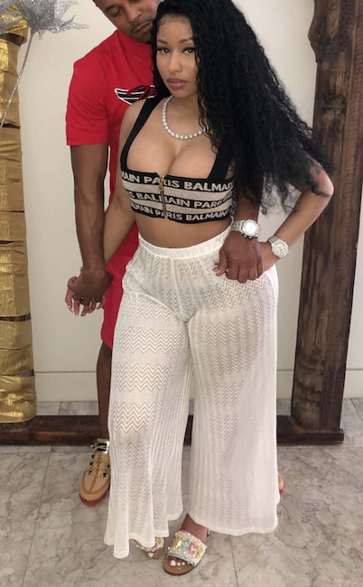 “Tryna lay low, don’t tempt me sleeze,” Nicki wrote alongside this selfie of the couple, quoting her “Barbie Goin Bad” lyrics.