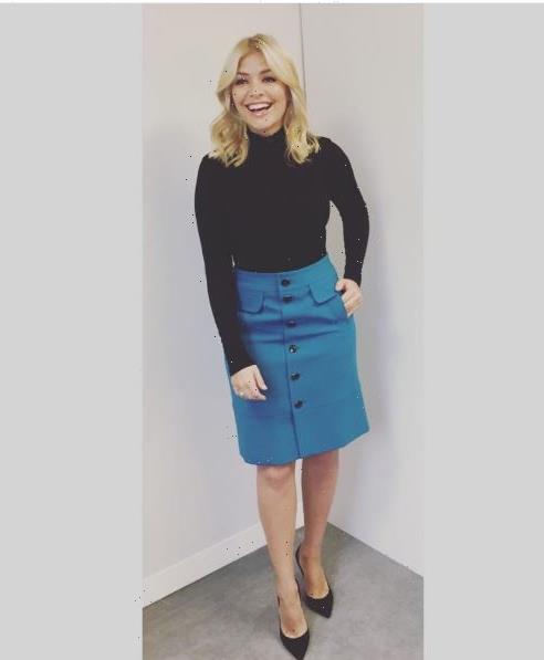 Holly, 35, wrote: "Today's look on @thismorning … skirt from @karen_millen top by @hm shoes by @gianvitorossi xxxx"